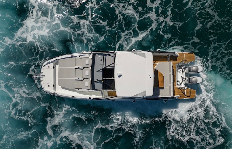 Featuring the “smart walkaround” concept, the Flyer 10 marries easy movement on board with safety, and with an asymmetric single port walkway, she offers a bigger deck space, with a vast three people sunbathing area, and a unique amount of cabin space.