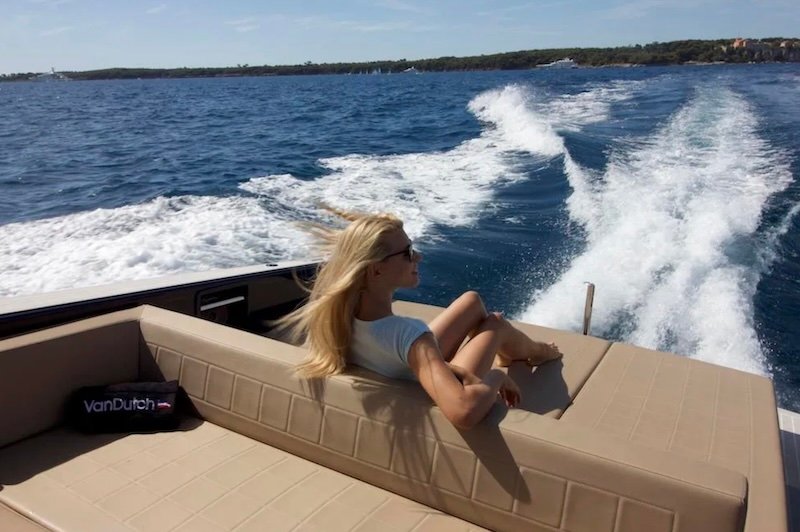 Charter the VanDutch 40 for the epitome of elegance and luxury. With its sleek lines and impeccably clean exterior, this vessel exudes grandeur. Marvel at the breathtaking views of the Cote d’Azur and enjoy a swift, smooth ride that beats traffic. The VanDutch 40 stands out with its meticulous finish and high-quality materials, making it the trendiest choice for a charter boat experience.